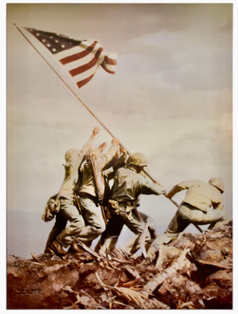 72 years ago today, on February 23, 1945, six American Marines carried the American flag to the top of Mount Suribachi during the bloody battle of Iwo Jima and raised it in a declaration of victory. The photo of the raising of the American flag is now iconic.