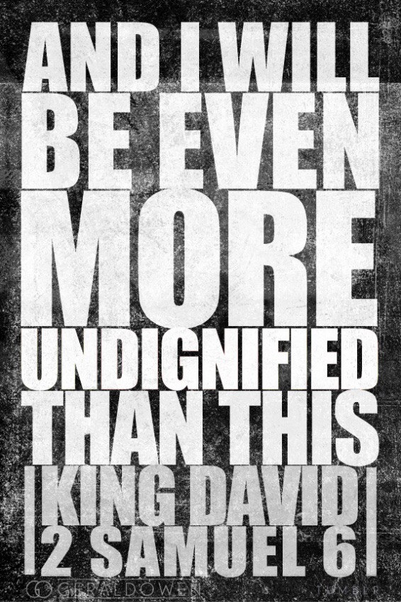 The Spirit has been reminding me of all of the times I threw being dignified out the window in order to be sanctified (set apart). I’ve done some pretty crazy looking things in order to obey His voice.