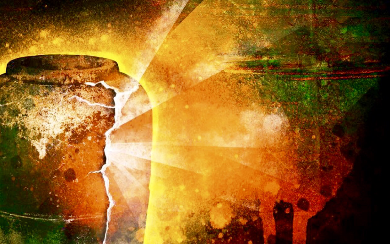 It reminds me of the jars that Gideon’s army carries with light in them in Judges 7. When they reached the enemy’s camp the jars were broken and the light was revealed causing the enemy to turn on themselves and be defeated. The light within our fragile jars is our weapon of victory. Our victory is not in numbers or in our own strength but it is the light within our broken jars.